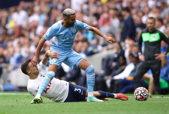 Kort variant og Mahrez dribler Dele Alli lekkert bort. Innlegget havner i fanget til Lloris.