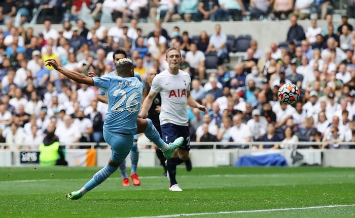 Son kommer til skudd. Via et City-bein og til en offsideplassert Lucas Moura på bakerste stolpe.