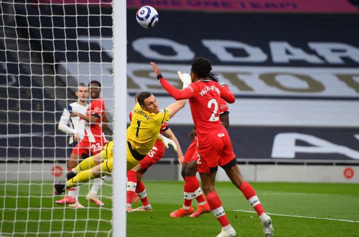 Salisu slurver to ganger på få sekunder i Soton-forsvaret. Lo Celso får avslutte fra brukbar posisjon, men skrur utenfor stolpen til høyre for McCarthy.