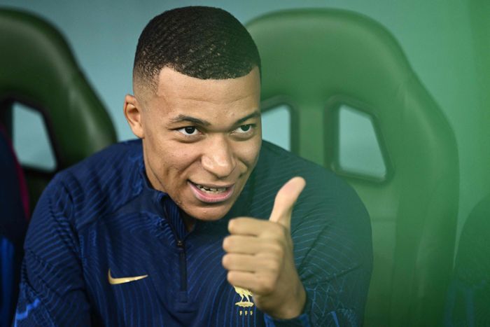 Hele stjernegalleriet til Frankrike - inkludert Kylian Mbappe - starter denne kampen på innbytterbenken. Foto: AFP