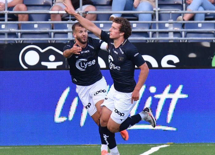 FOR EN SCORING AV SKARSEM! Frisparket fra Holse løftes inn. Så slurver Kabran med klareringen. Skarsem plukker den opp på kanten av 16-meteren, setter fart forbi Traore, og så banker han ballen i krysset fra spiss vinkel!