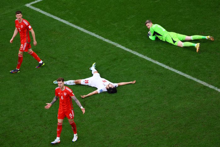 Iran punkterer kampen! Wales kaster alle mann i angrep, og det gir iranerne muligheten til å kontre. Rezaeian avslutter kontringen med en utsøkt chip over Ward! Det er det siste som skjer i kampen!