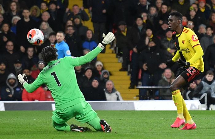 Watford god sjanse umiddelbart. Deeney slår Lovren i en duell og flikker igjennom Sarr. Avslutningen er god, men Alisson redder til corner.