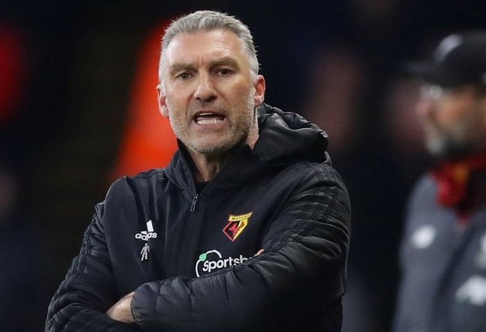 Watford-manager Nigel Pearson har et litt skremmende ytre, for å si det mildt. Men han ser ganske fornøyd ut på sidelinjen og heier frem sine spillere.