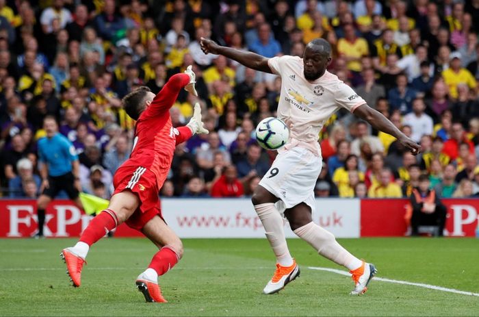 Lukaku sender United i ledelsen med magen! Young slår inn fra venstre og mellom forsvaret og keeperen lurer Lukaku seg frem og styrer ballen i mål. Foto: Reuters