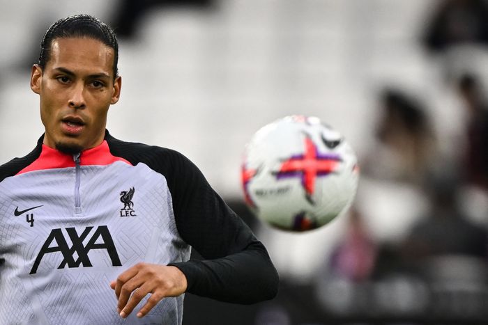 Liverpools midtstopper Virgil van Dijk fra oppvarmingen i kveld. Foto: AFP