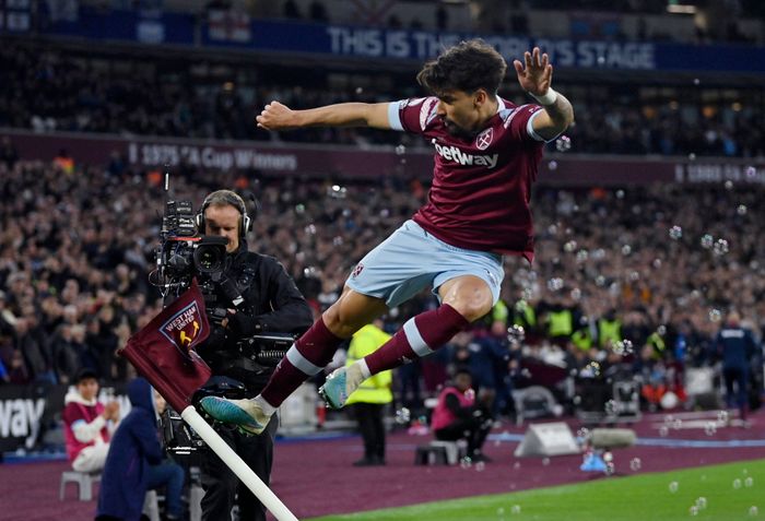 Soucek rager høyest, men den hodesterke tsjekkeren stanger kula et lite stykke over. Nok en fin sjanse for West Ham!