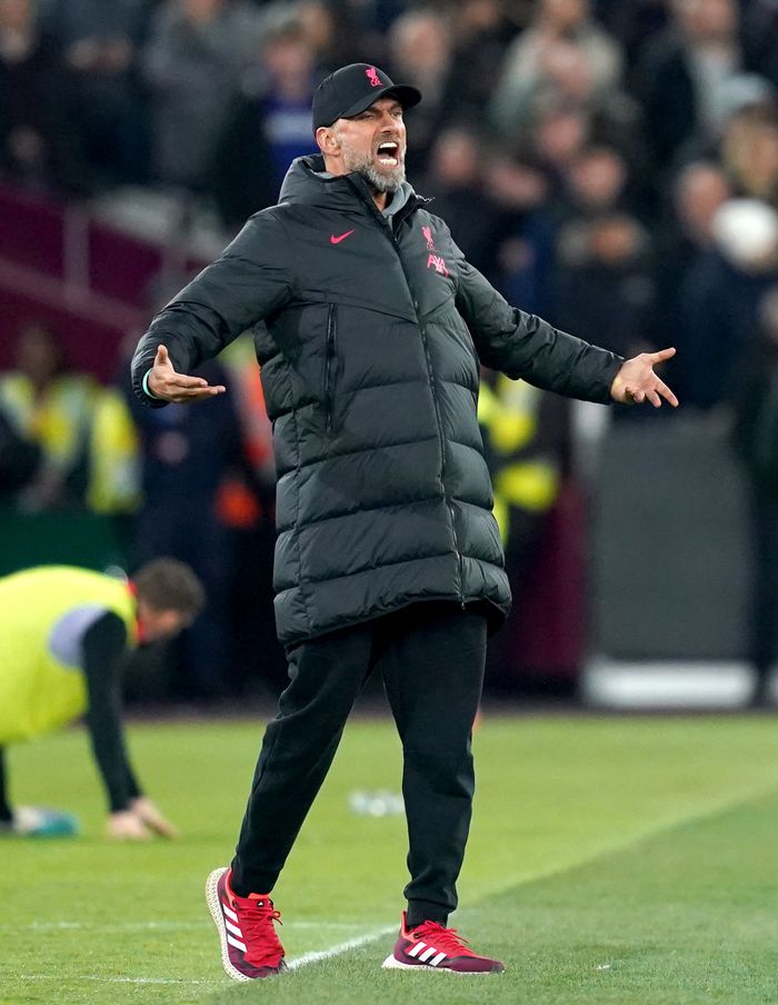Klopp går langs sidelinjen med armene i kors og tungen litt ute av munnen. Hva tenker han nå?