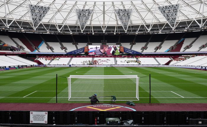 Preppet og klart. London Stadium før kampen mellom West Ham og Liverpool. Liverpool vant 2-1 på dette gresset forrige sesong. Foto: ANDY RAIN / EPA / NTB