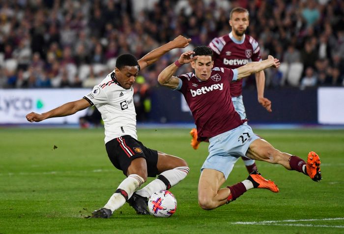 Misforståelse i West Ham-angrepet, og en pasning fra Antonio ender langt fra noen medspillere og triller til utspark for Manchester United.