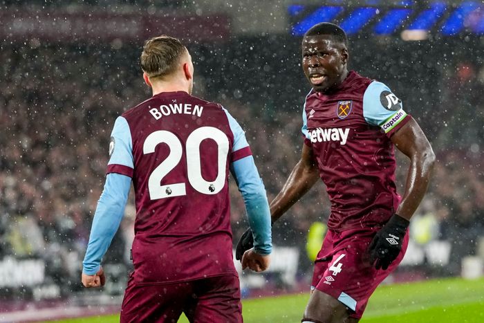 West Ham tror de tar et kjapt frispark, så Bowen og Kudus får gode muligheter alene med keeper, men dommeren har ikke satt igang spillet.