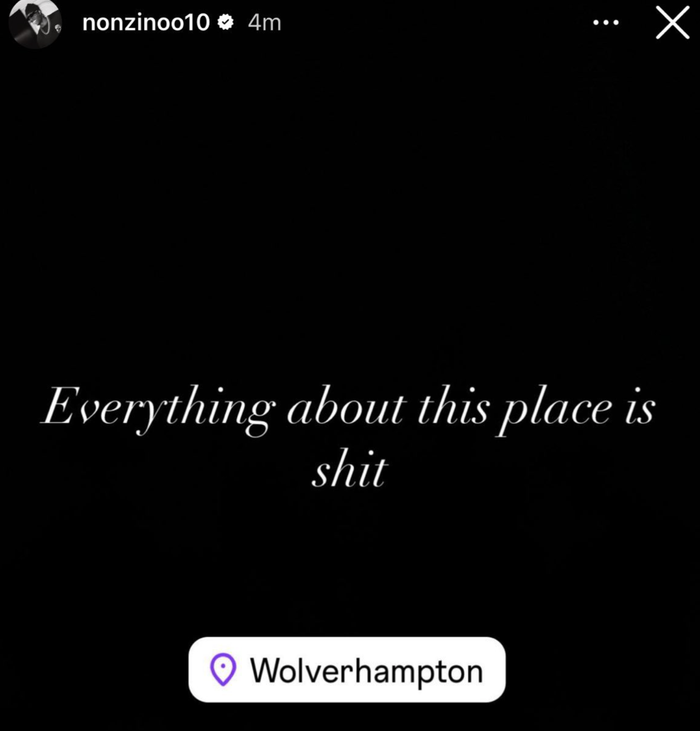Dette var altså det Madueke la ut på Instagram før kampen. På feil konto, ifølge ham selv. Men, ja, skjønner jo at Wolves-fansen ikke elsker det.