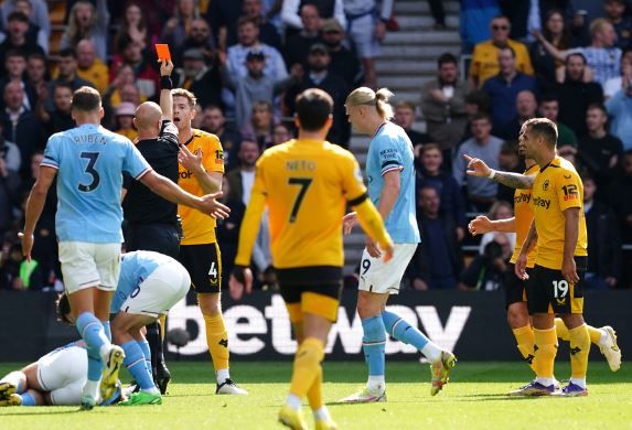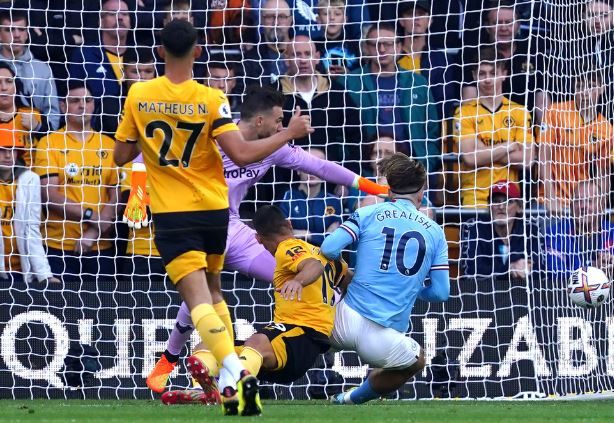 Cancelo med en høy ball inn i feltet, og Foden får nesten kontakt med den med et "karatespark". Wolves og keeper Sa slipper med skrekken, og sistnevnte fanger.