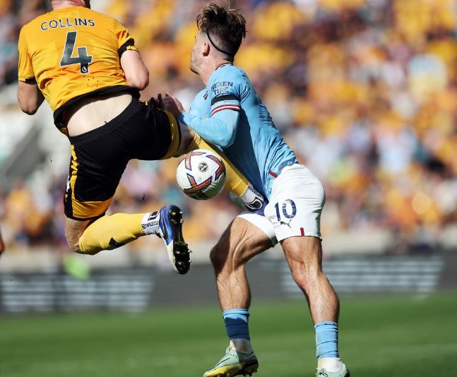 Grealish er på bena igjen, og viser merkene til Wolves-kaptein Neves. Det ser ut til at det er den høyre hoften det har gått verst ut over.