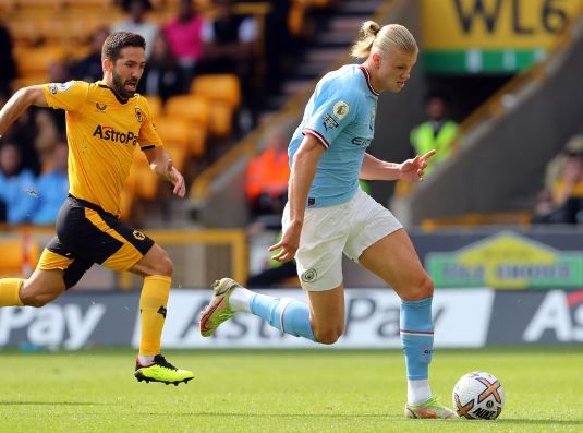 Scoringen kommer altså etter en god Wolves-periode, men Haaland er nådeløs. Avslutningen er ikke har, men sniker seg forbi Sa.