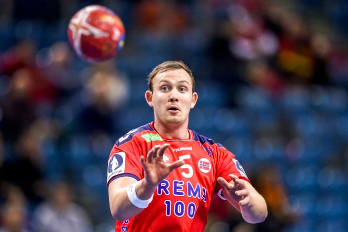 To skifter i startoppstillingen ute på banen også: Magnus Abelvik Rød for Harald reinkind og Magnus Gullerud for Petter Øverby. Norge (fra venstre) Sebastian Barthold, Sander Sagosen, Christian O'Sullivan, Magnus Gullerud, Magnus Abelvik Rød og Kristian Bjørnsen. I forsvar kommer Vetle Eck Aga inn for O'Sullivan eller Sagosen.