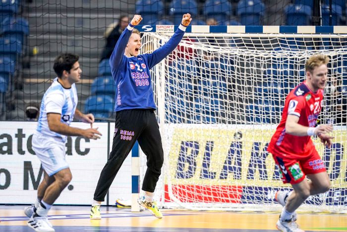 Målvakt Kristian Sæverås er fornøyd så langt. Foto: NTB