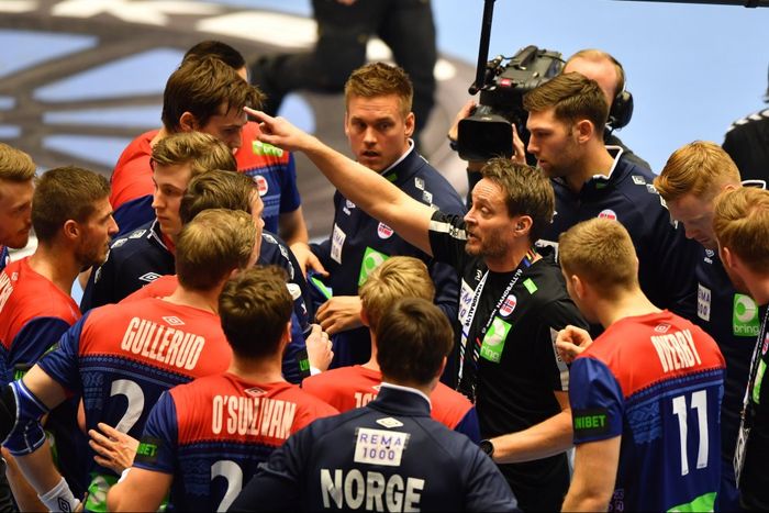 Norge stiller med følgende lag: Torbjørn Bergerud starter i mål, og fra venstre mot høyre, er dette de seks utespillerne: Magnus Jøndal, Sander Sagosen, Christian O'Sullivan, Magnus Gullerud, Magnus Abelvik Rød og Kristian Bjørnsen.
