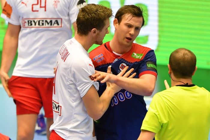 Morten Olsen, som storspilte mot Frankrike, kommer inn i den danske startoppstillingen mot Norge. Han bytter i forsvar med Henrik Møllgaard. Ellers starter Danmark med Niklas Landin i mål, broren Magnus på venstrekant, Mikkel Hansen på venstreback, Rasmus Lauge som playmaker, Morten Olsen på høyreback og Lasse Svan på høyrekant. Anders Zachariassen spiller strek.