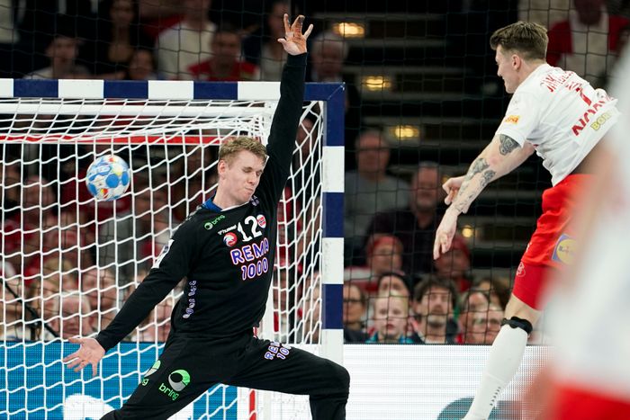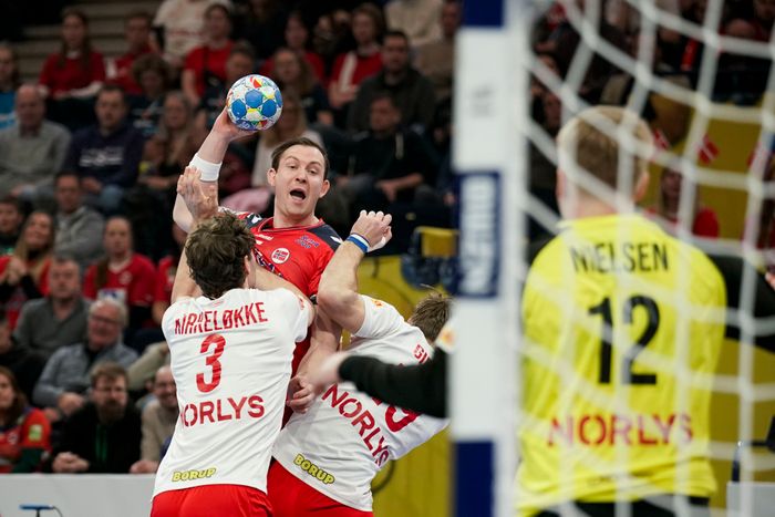 TØFFE TAK: For Sander Sagosen og det norske laget i innledningen mot Danmark.