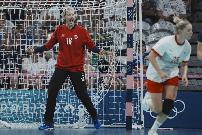 Norge kjørte over Danmark i OL-kampen i Paris 28. juli. Etter å ha tapt åpningskampen for Sverige, ble danskene slått med 27-18. Veronica Kristiansen (6 mål) dominerte for Norge.