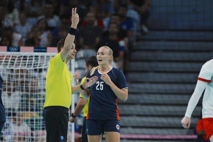 Straffekast til Norge. Brattset Dale blir tatt på strek av Rikke Iversen.