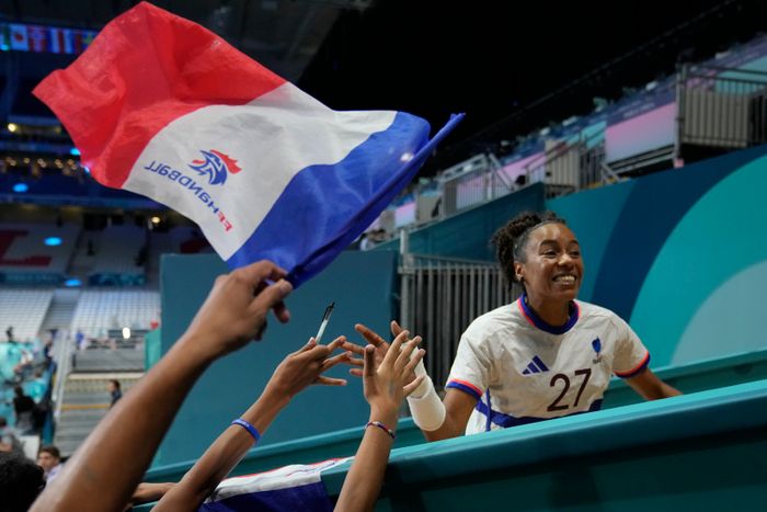 Frankrike er allerede klare for lørdagens OL-finale. OL-favorittene måtte ha ekstraomganger for å slå Sverige 31-28. Svenskene ledet 20-16, mens åttemålsscorer Tamara Horacek utlignet til 25-25 bare 14 sekunder før slutt. I ekstraomgangene raknet det for svenskene. Syvmålsscorer Estelle Nze Minko (bildet) kunne juble for finaleplass i en kokende kokende hjemmearena.
