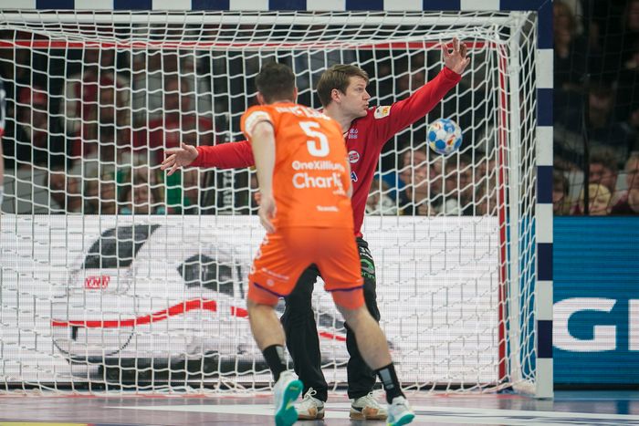 Sagosen misser med sitt innspill mot Øverby, men sistnevnte holdes og dermed får Norge frikast.
