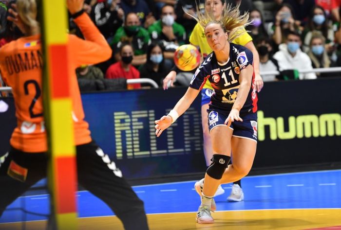 Stine Bredal Oftedal står med to mål så langt nå som Romania har tatt time out.