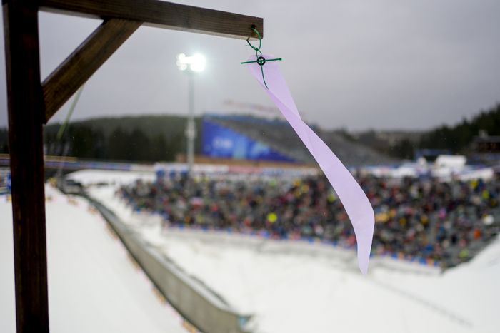Får en del vind i starten her, hopperne. Det er som mange sikkert har fått med seg utfordrende værforhold i Granåsen denne søndagen.
