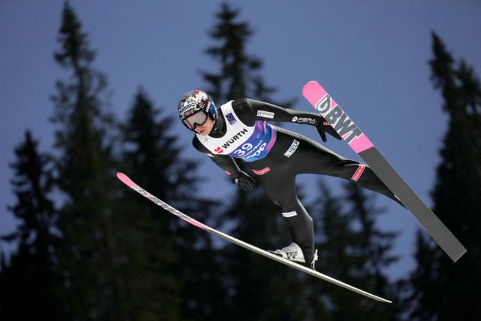 Nå kommer den ene store hopperen etter den andre! Andreas Wellinger hopper 106,5 meter og legger seg rett bak Lindvik.