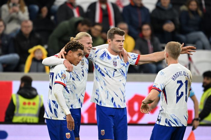Ørjan Håskjold Nyland - Marcus Holmgren Pedersen, Kristoffer Ajer, Andreas Hanche-Olsen, David Møller Wolfe - Julian Ryerson, Sander Berge, Morten Thorsby, Antonio Nusa - Alexander Sørloth, Erling Braut Haaland