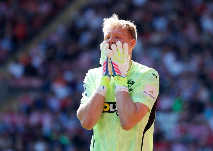 Så spretter en lang ball helt inn til Ramsdale. Southampton-supporterne juber som om de skulle ha scoret.