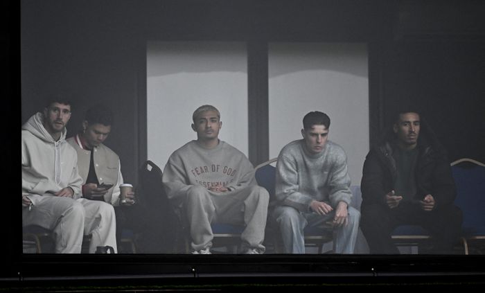 Noen av Bournemouths utilgjengelige spillere følger (delvis) med på kampen fra VIPen.