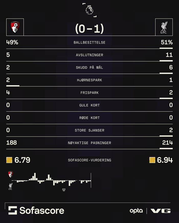 Har vanskelig for å tro det, også spesielt med tanke på at benken til Bournemouth ser rimelig tynn ut. Men Bournemouth kommer fra kruttsterke 4-1-seier mot Newcastle og 5-0 mot Forest i sine to siste kamper, så de er absolutt kapable til å skape trøbbel selv for Liverpool.