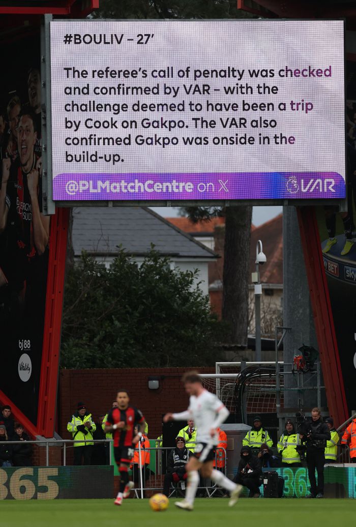 Straffe til Liverpool! Ser ut som at Cook kakker Gakpo på hælen inne i boksen. Dommer England peker rett på straffemerket.