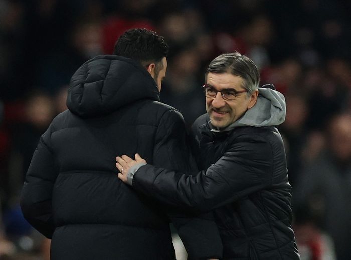 Ivan Juric hilser på Ruben Amorim. Foto: Reuters