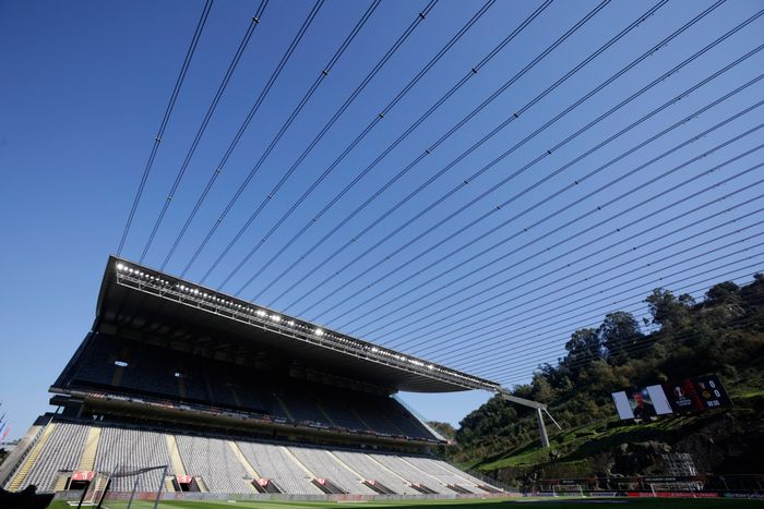 Det er plass til 30 000 på Braga Municipal Stadium - men siden klokken tross alt bare er 16:00 lokal tid er det ikke stappfullt i Braga.
