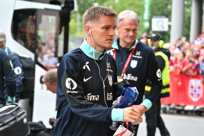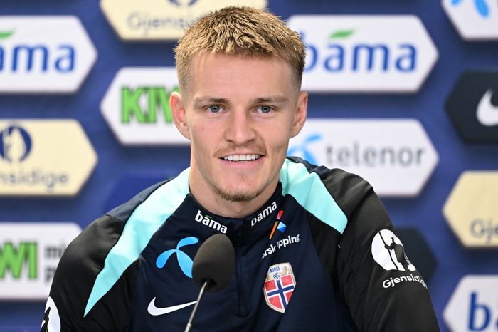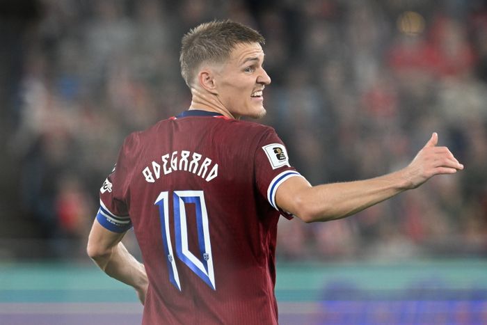Martin Ødegaard spiller sin 67. landslagskamp i kveld - like mange som Ole Gunnar Solskjær. Da vil han "bare" ha 16 spillere foran seg på adelskalenderen. Foto: Bjørn S. Delebekk / VG.