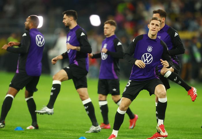 Tyskland stiller med følgende lag (3-4-2-1): Baumann - Tah, Rüdiger, Schlotterbeck - Kimmich, Stiller, Goretzka, Mittelstadt - Sané, Musiala - Kleindienst