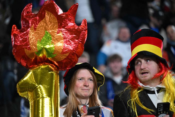 Hjemmesupporterne er iallfall imponerende kledd for anledningen.