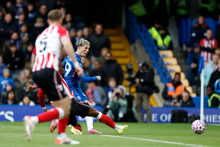 Estevao får slått inn fra skrå vinkel. Pedro forsøker å skli den inn, men han bommer. Gittens var også i god posisjon enda lenger bak, men han så nok ikke helt utgangen der - og er ikke helt med da ballen kommer. Mukiele som får klarert.