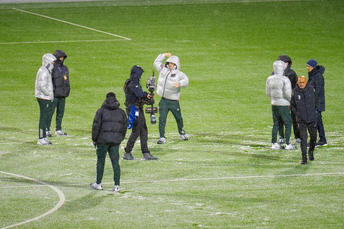 Juventus-spillerne leker med snøballer på banen før kamp. Artig vri.