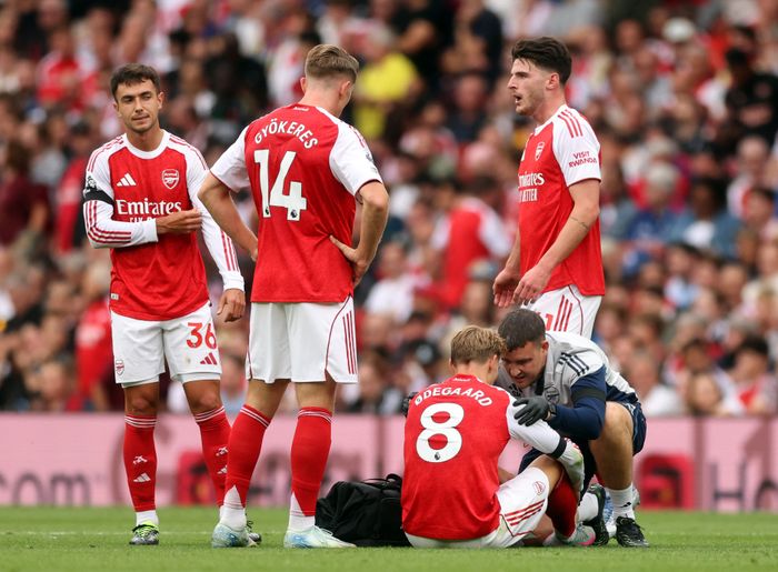 Arsenal møter Liverpool neste helg. Mulig de må starte den uten både Ødegaard og Saka, så dette passer ordtaket "fra vondt til verre" ganske godt for Arteta. Heldigvis for ham så leder de denne kampen 3-0.