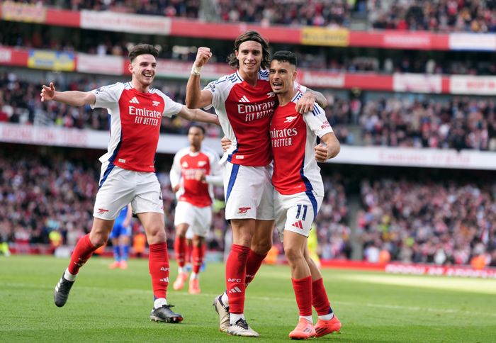 Arsenal stiller med følgende ellever: Raya - Calafiori, Gabriel, Saliba, Timber - Rice, Partey, Trossard - Saka, Havertz, Martinelli.