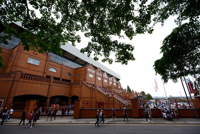 Folk er på vei inn på Villa Park lørdag ettermiddag. Foto: REUTERS.