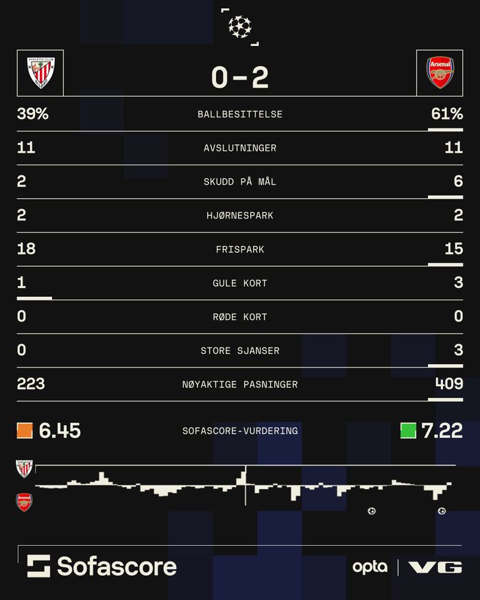 Lite som tyder på at Athletic har noe å komme med her. Ganske komfortabelt for Arsenal enn så lenge