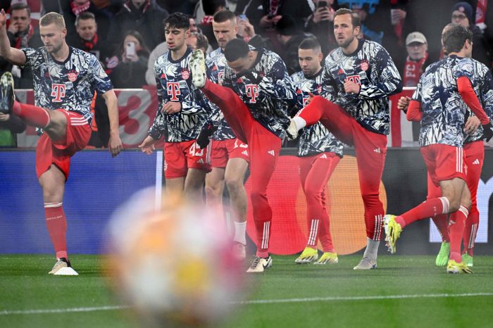 Bayern-spillerne i oppvarming før kampen mot Lazio. Foto: KIRILL KUDRYAVTSEV / AFP / NTB