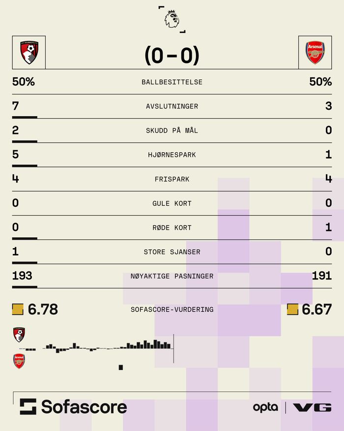 Bournemouth med fire skudd på mål i kveld. Arsenal har kun ett, viser grafikken.