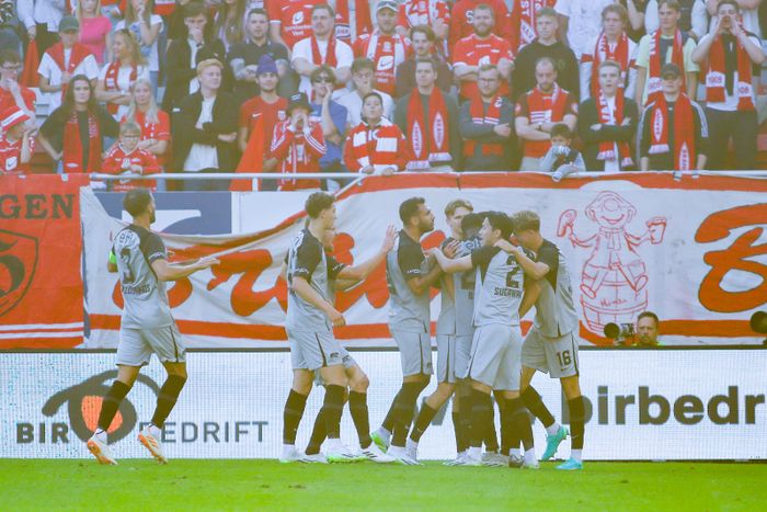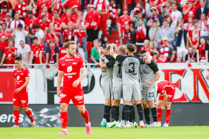 0-2! Gjestene stormer i angrep igjen. Flytter opp mange spillere før Mijnans får stå upresset utenfor 16-meteren. Midtbanespilleren får sikte og lade, og plasserer inn gjestenes andre på vakkert vis! Foto: NTB